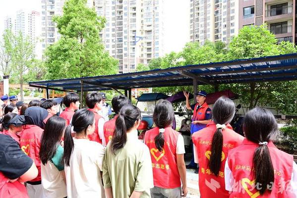 湖北日报讯(通讯员宁静)5月31日,黄石开发区·铁山区消防救援大队联合江南·体育大学生青年志愿者深入住宅小区开展消防安全宣传活动,现场指导居民查找居民楼道及电动车火灾隐患,共建平安家园。