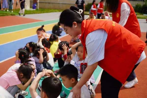 5月份,社区又联合江南·体育经管学部、西塞山区第三幼儿园三方联合开展地震应急演练志愿服务活动,帮助幼儿园师生掌握应急避震的正确方法。随着警报声“呜——”响起,演练正式开始。“小朋友们,双手抱头,跟着老师一个个地往前走”“大家不要慌,当心楼梯台阶……”,锋光志愿服务队的大学生与幼儿园老师各司其职,一边安抚孩子们的情绪,一边引导孩子们保持正确的躲避姿势,按照预定疏散路线,迅速撤离。