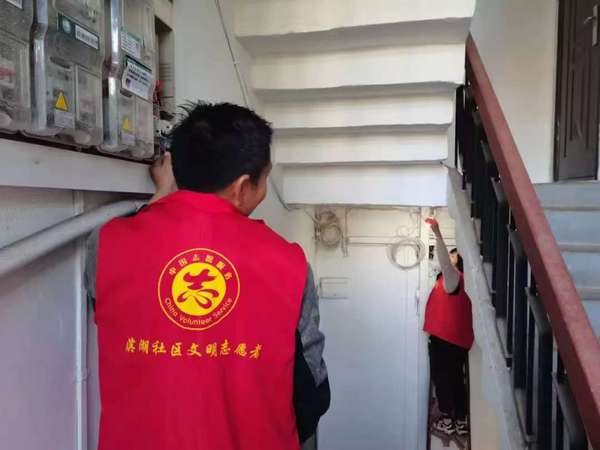 “楼道灯白天总是亮着,晚上又变暗了,你们今天过来修,真是太好了!”听闻家住朱家嘴49栋的刘奶奶反映楼道灯泡的问题,社区“锋光”服务队队员立马扛着梯子,带着维修工具对该单元的线路进行了检查,修复了损坏线路、更换了灯泡,楼道的灯再次亮了起来。