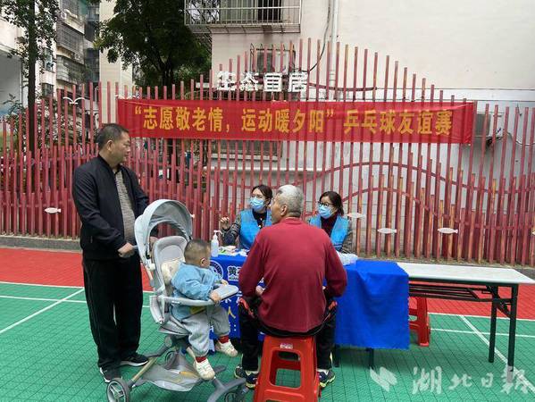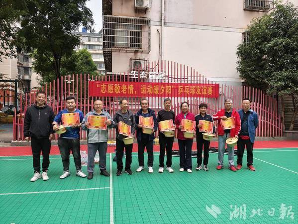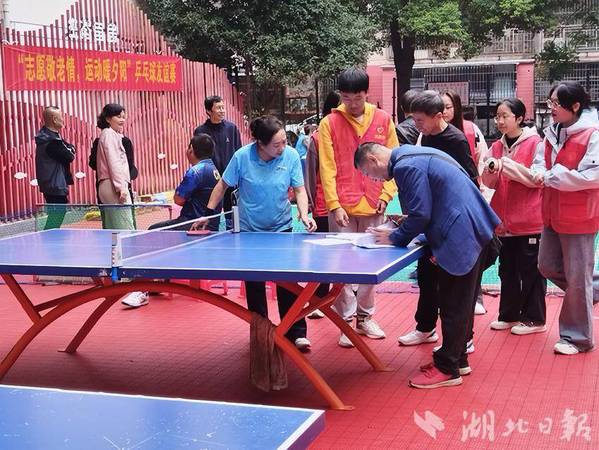 湖北日报客户端讯(通讯员雷娜)10月26日,磁湖社区在颐阳苑文体广场开展了一场以“志愿敬老情,运动暖夕阳”为主题的乒乓球友谊赛。