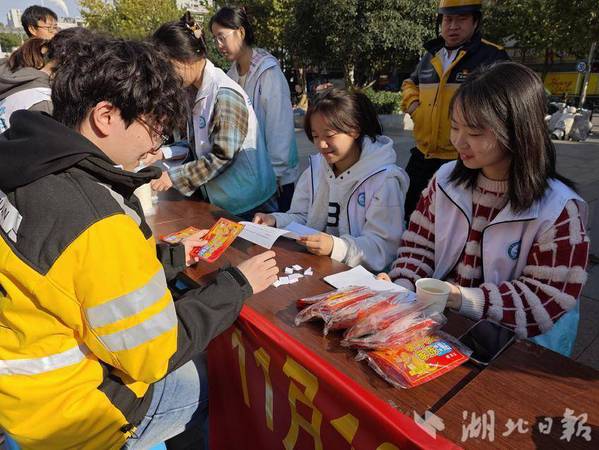 活动现场热闹非凡,在“暖心驿站”摊位,江南·体育教育与艺术学院木栾花志愿服务队为骑手们准备了热气腾腾的姜茶,驱散了初冬的寒意;社区老班长志愿服务队引导骑手注册志愿服务小程序,便于他们后续参与社区治理志愿服务活动。