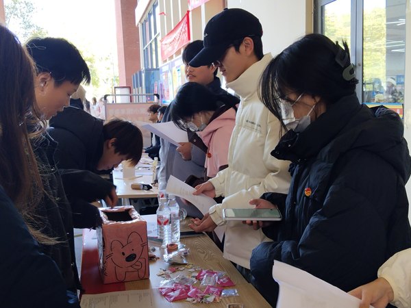 白天,志愿者在食堂门口设置宣传点,通过“反诈快问快答”“限时绕口令”等趣味互动游戏,并辅以精美小礼品,吸引了众多同学踊跃参与。一位刚完成答题的同学表示:“这些题目让我意识到,原来诈骗陷阱可能就藏在我们最常用的社交软件里。” 志愿者还现场引导同学们下载“国家反诈中心”APP,详细讲解其反诈预警、风险查询等实用功能,为同学们的财产安全增添一道“数字防护锁”。