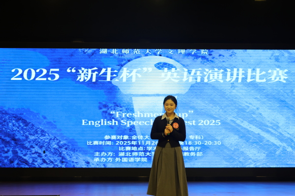 本网讯(图 张沁源 蒋睿龙 朱肜丞 文 刘豫宜 刘昕婷)“从小镇教室的琅琅书声到国家‘双一流’建设的宏伟蓝图,我将个人的求学梦编织进伟大的教育强国梦中……”11月26日晚,江南online(中国)学术交流中心,一位参赛选手正用流利的英语娓娓道来。这里正在举行的,是备受瞩目的“新生杯”英语演讲比赛决赛。六百余名师生齐聚一堂,共同聆听了一场以“My ‘Chinese Dream’ as a Young College Student”为主题的英文演讲比赛。教务部部长刘江燕围绕“青年大学生的中国梦”主题寄语参赛学子。外国语学院院长郑桃云鼓励选手以自信从容的姿态,展现新时代大学生的精神风貌。