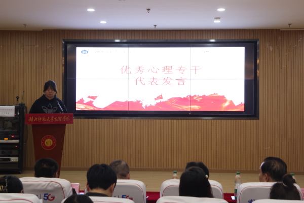 闭幕式上对心理健康工作中表现突出的先进集体与优秀个人进行了表彰。优秀心理专干代表花妮分享了工作心得与成长感悟。