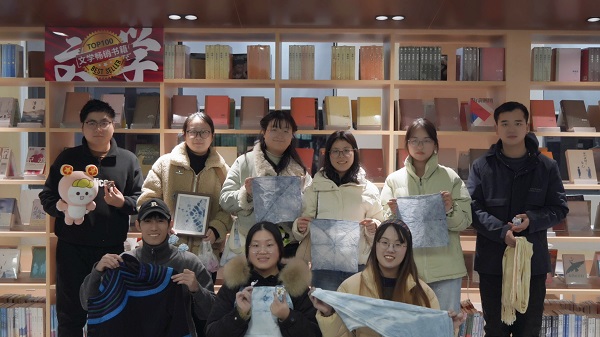 课上,田蓉蓉老师围绕植物染传统文化,系统介绍发酵染、煎煮染、敲拓染等9种常用技法,明确扎染作为贯穿植物染创作的工具与方法核心属性,并结合安徽芜湖、浙江良渚等地文艺手工市集案例,生动阐释了植物染创作的多元方向与市场潜力,为青年搭建起传统技艺与创业实践的认知桥梁。