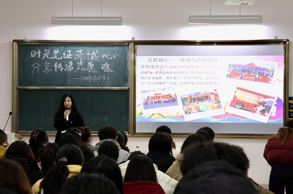 学生代表鲁毅上台发言,分享了自己在志愿服务中的心得体会和成长收获,激励同学们积极参与志愿服务,在服务中丰富经验、锤炼本领,以赤诚之心点亮成长之路,用实际行动诠释青春的价值。
