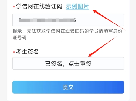 填写学信网在线验证码,以便审核.点签字保存后,提交