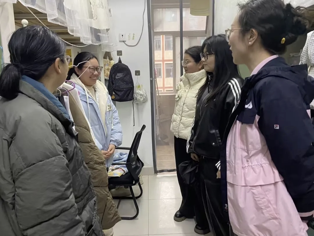 在关心同学们生活的同时,走访团队也着重进行了安全教育与隐患排查。领导老师们叮嘱同学们,要时刻将安全记在心间,自觉维护宿舍环境卫生,坚决杜绝使用违规电器,妥善保管个人财物,共同营造安全、文明、和谐、健康的居住与学习环境。辅导员老师们也对同学们提出的具体问题进行了细致解答。