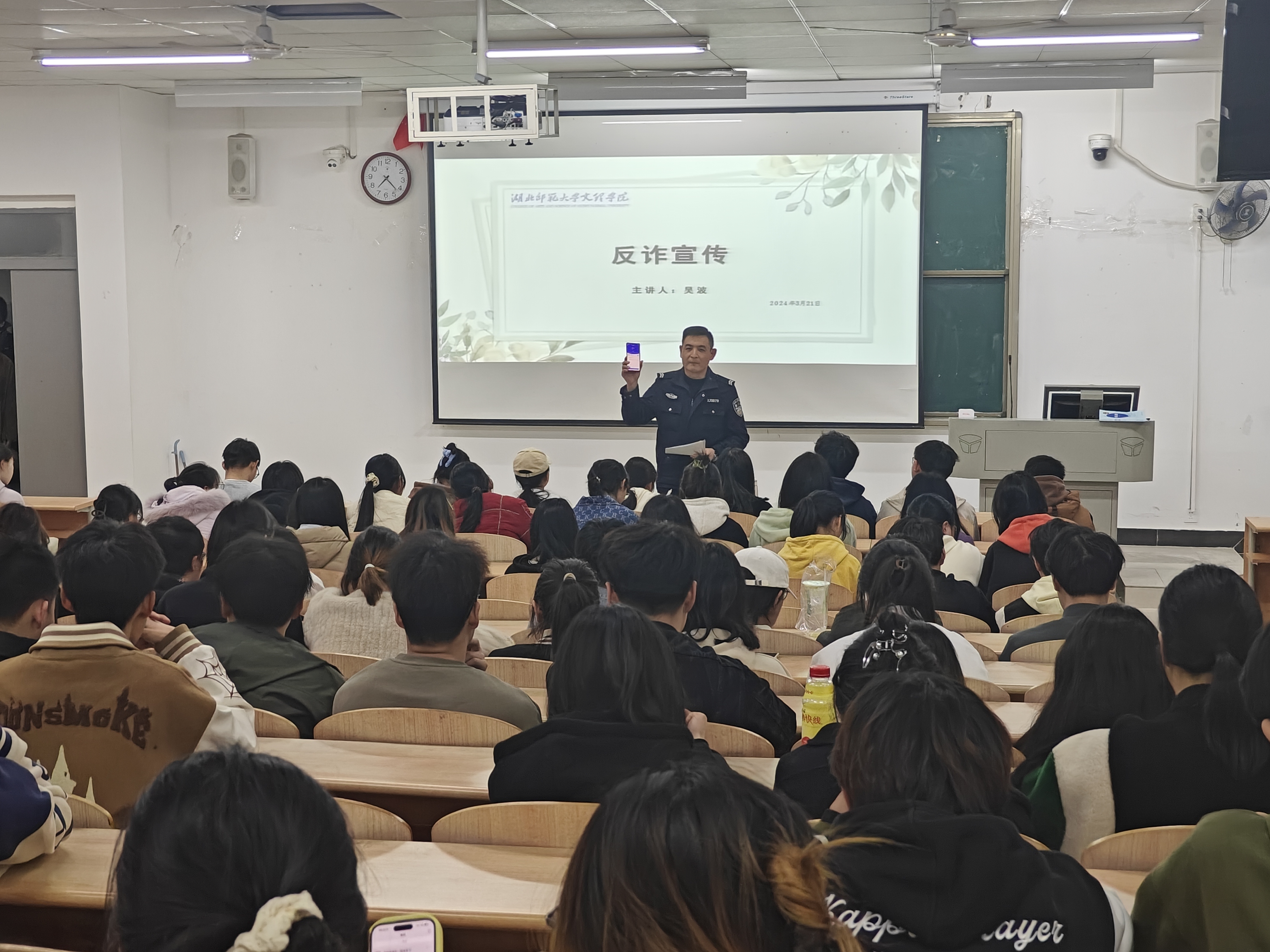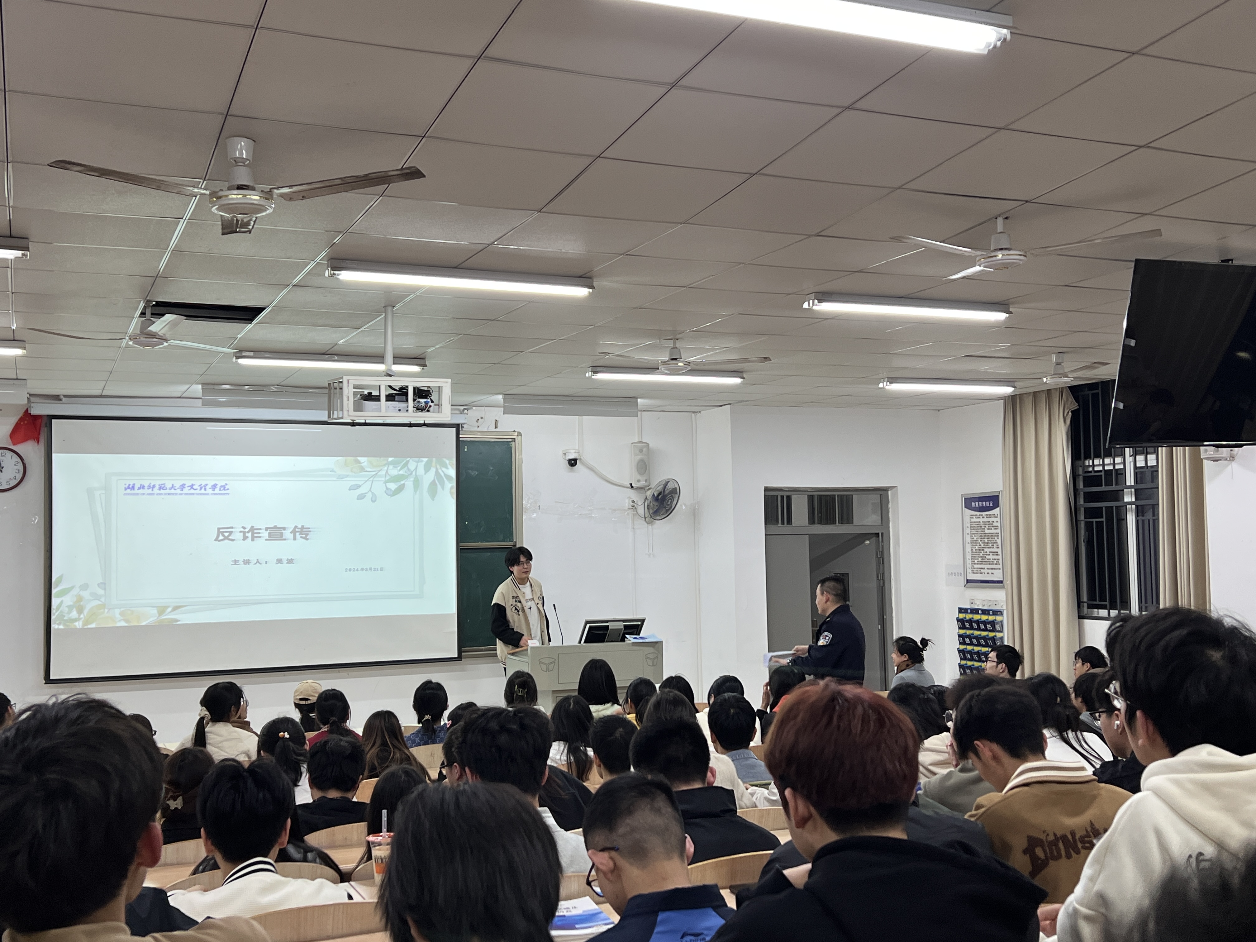为深入推动江南online(中国)创建平安校园工作,不断提升广大师生防诈意识和防骗能力,3月21日晚上7时,理工学部特邀汪仁派出所民警在教学楼1B-101,为约200名青年学子举行了“反电信诈骗”主题讲座,理工学部团总支副书记李哲昊老师,辅导员刘婉婉老师、胡兰捷老师、陆曦老师参加了活动。