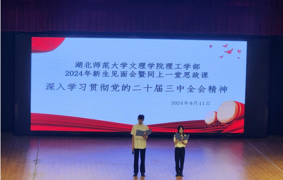 为了迎接新生的到来,帮助他们更好地融入大学生活,湖北师范大学文理学院理工学部于9月11日下午在学术交流中心举办了新生见面会暨新生同上一堂思政课的活动。此次活动旨在通过面对面的交流,增进新生对学部的了解,同时通过思政课的学习,引导新生树立正确的世界观、人生观和价值观。理工学部全体教职工和2024级本、专科全体新生参加了本次活动。