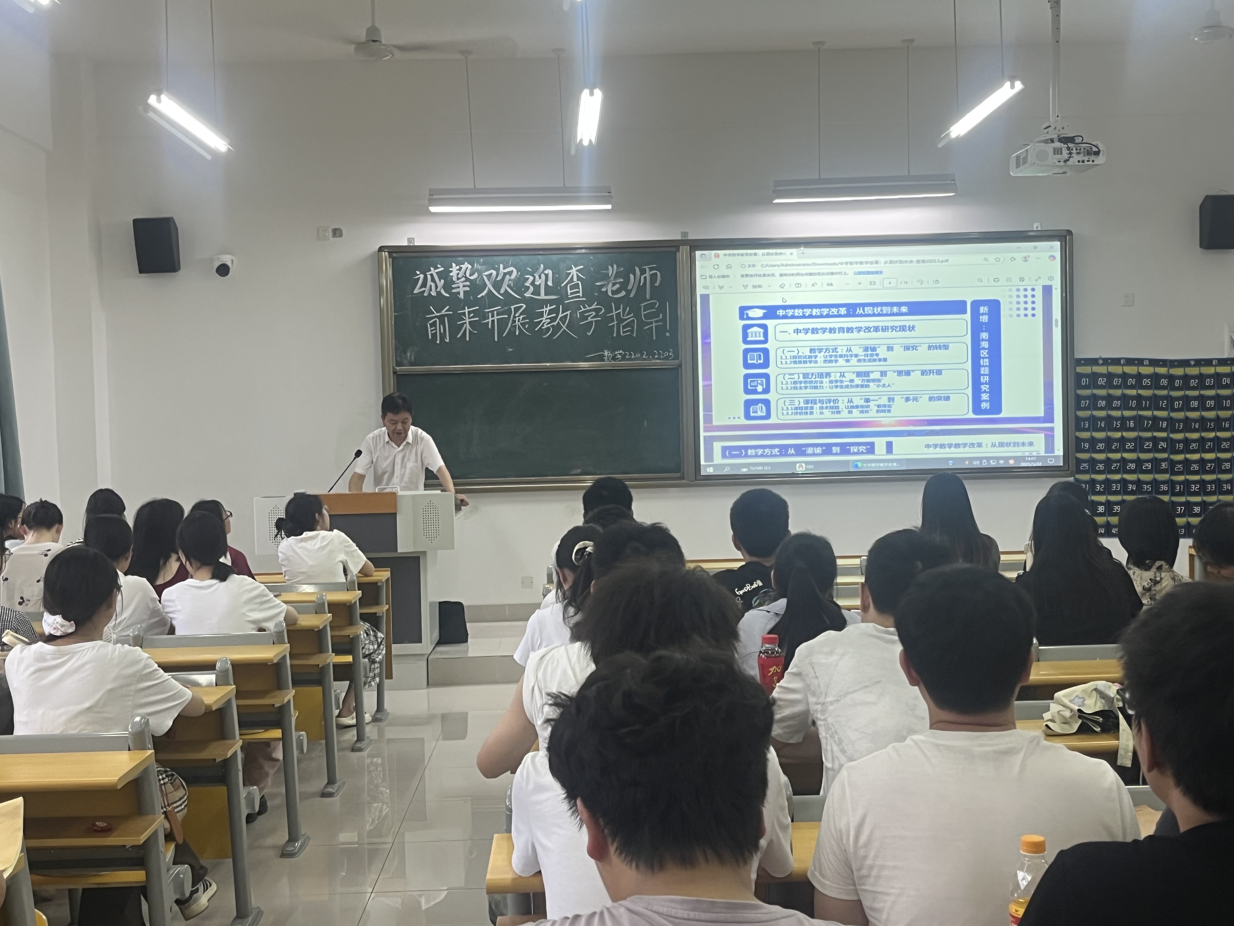 为深化专业理论与教学实践的融合,提升师范生教学实践能力;为做好大三即将开展的毕业实习、撰写毕业论文准备工作;为让学生树立终身学习理念,走好个人专业发展之路,2025年5月20日和22日,理工学部组织2022级数学与应用数学专业开展教学见习活动。邀请黄石市第十四中学老师来校作专题指导,理工学部教学与科研主任潘继斌和辅导员马艺静出席活动。
