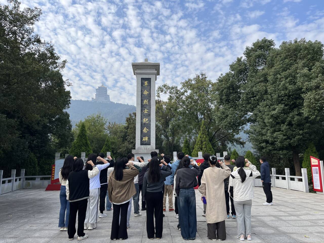 步行至山顶后,组织党员队伍在革命烈士纪念碑前举行简短而庄重的仪式。全体党员行三鞠躬礼,由理工学院教工党支部书记黎博同志领誓,全体共产党员重温入党誓词。