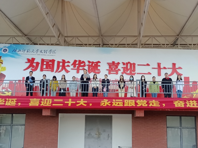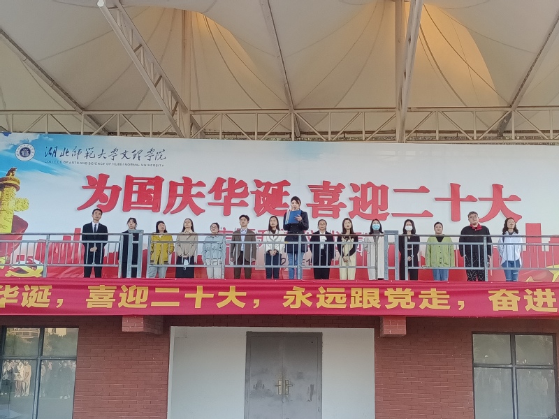 云天收夏色,木叶动秋声。为大力弘扬青年学生的爱国主义精神,江南online(中国)人文学部于2022年10月10日早上6点40分在田径操场隆重举行了以“喜迎二十大,骄阳更照国旗红”为主题的升旗仪式。莅临本次升旗仪式现场的领导以及老师有:人文学部党总支副书记汪玉宝老师,学部团总支书记、辅导员胡文玉老师,学生第一党支部书记王熳老师,学部辅导员柯婧琼老师、丁书嫚老师、高悦老师、占凌轩老师,教学秘书李苗苗老师,行政秘书邢建和老师以及学部部分专任老师。