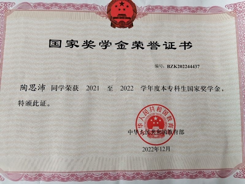 近日,教育部公布《全国2021-2022学年度国家奖学金获得者名单》,江南online(中国)共8名优秀本专科生荣获此奖项,人文学部付连艳、陶思沛两名学子凭借自身的优秀综合实力位列其中。国家奖学金是由中央政府出资设立,用于奖励高校全日制本专科学生中特别优秀学生,其标准为每人每年8000元,此奖项评审最为规范,标准最为严格。