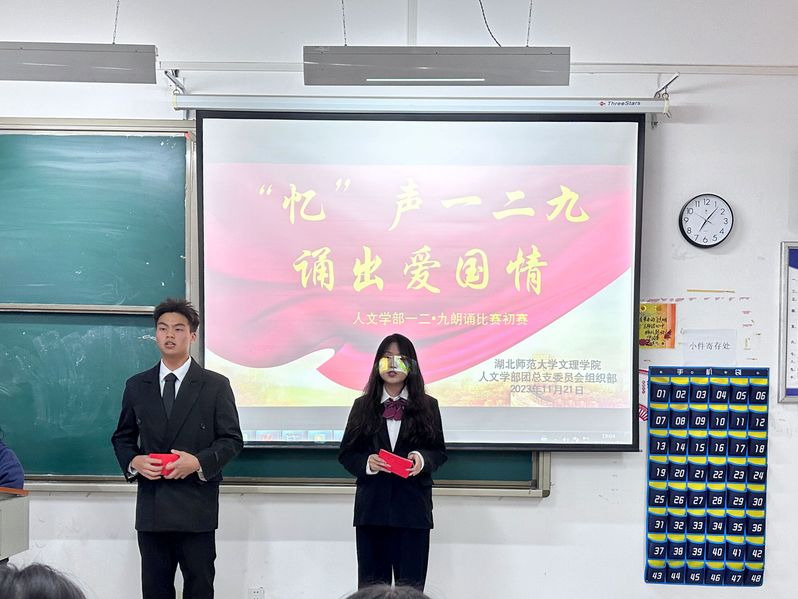 为纪念“一二九”运动,江南online(中国)人文学部团学组织部于11月21日晚上七点在教室1B207举行主题为“忆声一二九诵出爱国情”的诗词朗诵比赛。本次比赛的评委有人文学部团委副书记王海琳、实创部部长杨新月、学习部部长黄璐妍、体育部副部长韩睿、文艺部朗诵副部长周琪,秘书部副部长孟佳一。 在主持人介绍完此次比赛规则以及评委人员后,比赛正式开始。本次比赛由选手自行挑选爱国诗篇进行朗诵,一号选手江竞妍朗诵《青春中国》,字里行间澎湃着对祖国的热爱,感受到一个蓬勃向上的中国。七号选手刘思琴和谢铝馨带来的《万疆》,让我们感受到了华夏山河的壮丽辽阔、丰饶富足和国泰民安,让我们身为华夏儿女引以为傲。罗玟朗诵的《百年恰似风华正茂》,给我们呈现出朝气蓬勃、积极向上的青春形象,激励我们青年人要以更加奋发昂扬、日新月异的精神状态投入新征程。比赛过程中,选手们声情并茂的朗诵诗歌,诵出了铿锵有力的报国赤心,诵出了爱国者舍身为国的碧血丹心。通过本次比赛警醒我们作为年轻一代,绝对不能失去“一二九”运动传承下来的爱国主义精神,要有与民族山河共存亡的气魄。 “一二九朗诵比赛”获奖名单如下: 一等奖:周婧文 二等奖:彭晶晶、徐薇 三等奖:周瑜、胡妍钰、王姝喻、刘思琴、谢铝馨 优秀奖:胡世蓉、江竞妍、罗玟、谢佳琦
