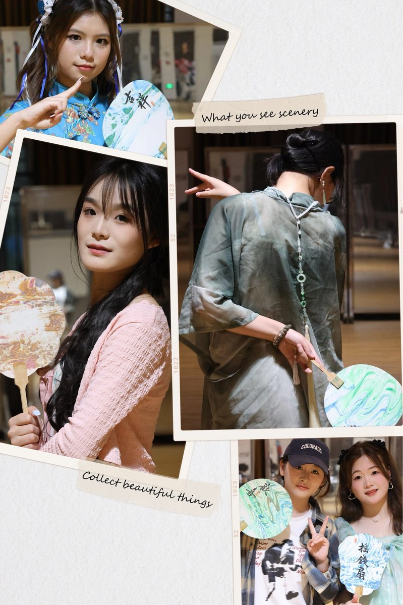 本次市集分为:非遗漆扇、古法香囊、粽叶飘香、传统书签、创意海报等多个“摊位”,让同学们深切感受到传统节日的独特魅力。