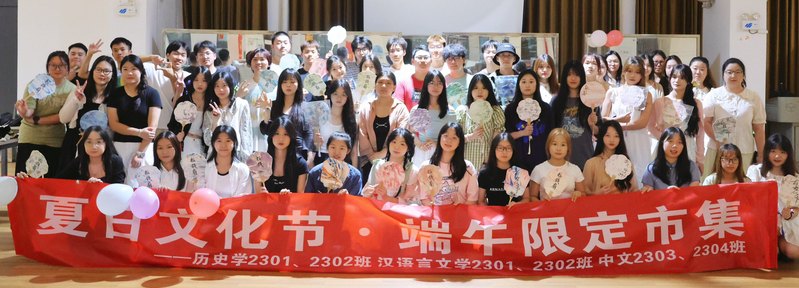 65日晚,人文学部在风雨操场一楼开展“夏日文化节·端午限定市集”活动,23汉语言文学历史学中文三个专业300余名学生欢度端午“粽”夏夜。