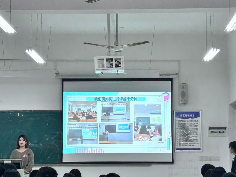 活动伊始,主持人简要介绍了活动目的、出席人员及规则。选手们依次上台进行演讲,内容分为两个板块:首先,讲述本班课前十分钟的开展情况;其次,结合现场主题,利用PPT进行个人展示,其中课前内容展示占比约20%,个人展示占比约80%。