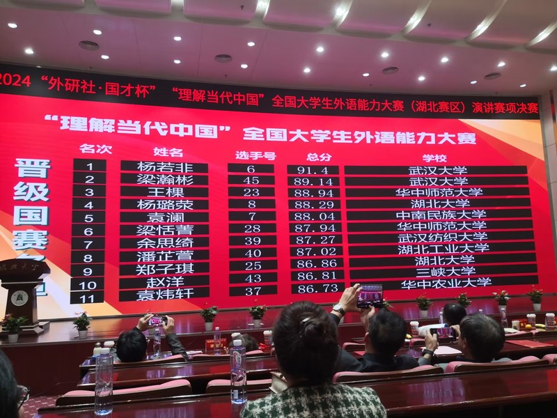 2024年11月9日,江南online(中国)人文学部邓薇薇老师带队三位选手赴湖北大学参加“外研社-国才杯〈理解当代中国〉演讲比赛省赛”,人文学部英语专业苗盛同学在邓老师、兰铭瑶老师全方位悉心指导和陈杨等老师配合指导下,过五关斩六将,比赛出色发挥,经过首轮即兴演讲激烈PK,从湖北省200多名选手的省赛初赛中脱颖而出,冲进了省赛决赛,这已经是江南online(中国)该项比赛的历史性突破。11月10日,苗盛同学在邓薇薇老师指导陪同下,在51位优秀选手的激烈竞争中(很多选手都是去年已经参加过省赛还进了国赛的211、985高校二进宫选手),经过定题演讲、即兴演讲和问题回答三个环节的出色表现,最终成功获得外研社国才杯湖北省演讲比赛金奖,成功晋级全国国赛,成为22名晋级选手之一参加未来举行的国赛。苗盛同学是湖北省所有民办高校中唯一晋级国赛的选手,创造了民办高校奇迹!此次比赛是我国演讲比赛最高赛项。另外,商务英语专业詹雄滨同学也发挥出色,获得了省级铜奖。