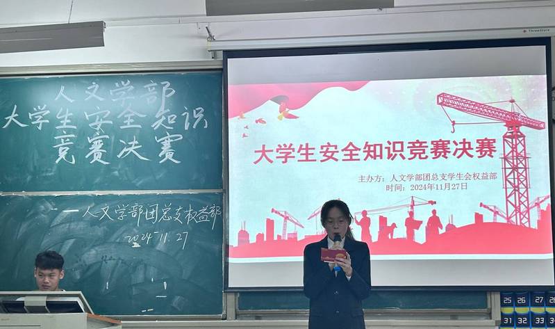 为了提升大学生的安全防范意识,检验学生对安全知识的实际应用能力,促进校园安全文化建设,人文学部团总支权益部于20241127日晚在1B101举行了“谨记安全知识,构建安全校园”主题安全知识竞赛。