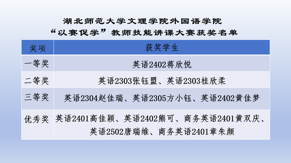 此次教师技能讲课大赛不仅为师范生们提供了一个锤炼教学技能、展示教学风采的优质专业平台,让他们在实践中不断成长和进步;更促进了师生之间、选手之间的深度教学经验交流,大家在交流中相互学习、相互启发,共同提升教学水平。相信在未来的日子里,外国语学院将在师范生培养与教学发展的道路上持续迈进,不断书写新的辉煌篇章。