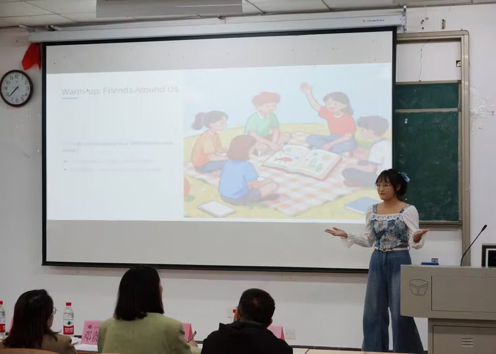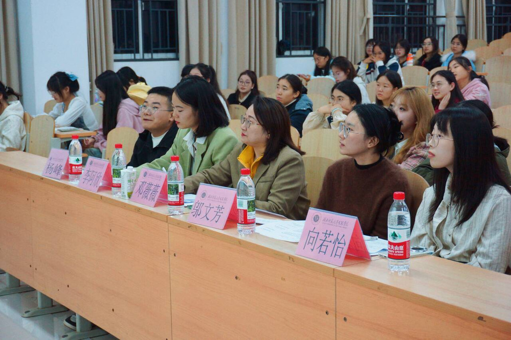 为强化师范生教学实践能力,搭建教学经验交流与风采展示的优质平台,推动学院教育教学工作迈向高质量发展新台阶,2025年10月27日晚18:30,江南·体育外国语学院教师技能讲课大赛在1B101教室顺利举行。评审团由英语教研室主任邓薇薇、团学指导老师杨峰,以及专任教师邬文芳、向若怡、李阿欣组成。
