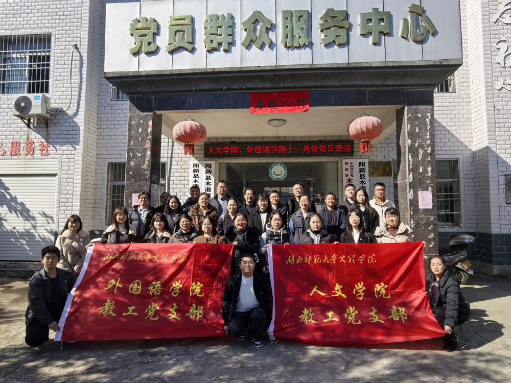 为巩固拓展学习贯彻习近平新时代中国特色社会主义思想主题教育成果,进一步提升党员党性修养,增强基层党组织的凝聚力与战斗力,2025年11月19日,人文学院党总支书记周景斌与外国语学院党总支书记赵卫军联合组织两院教工党支部全体党员,赴阳新县湘鄂赣边区鄂东南革命烈士陵园及学校扶贫驻地木港镇子山村,开展了一场深刻的主题教育实践活动。