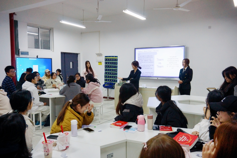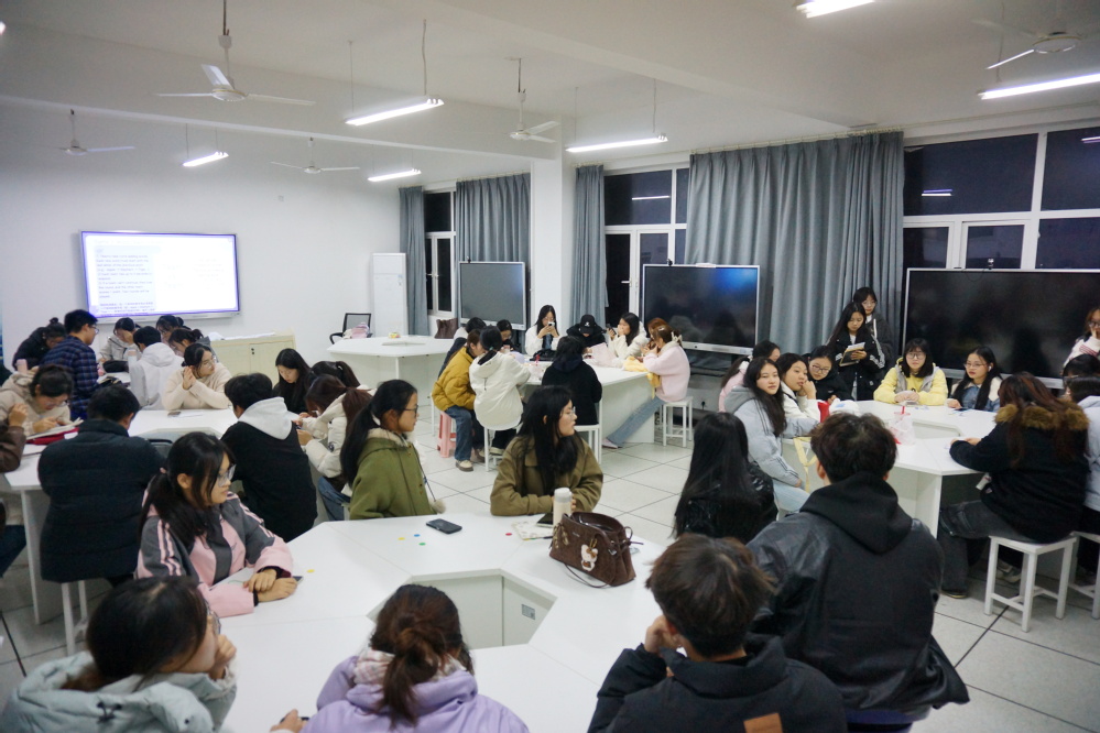 为营造浓厚英语学习氛围,提升学生跨文化交际能力,11月19日下午18:30,江南·体育外国语学院第三次英语角活动在三号实验楼505顺利落幕。活动由外国语学院院长郑桃云、党总支书记赵卫军精心统筹,学院团总支承办,专任教师向若怡到场指导,主办班级为商务英语2402班,吸引全院44名学生积极参与。