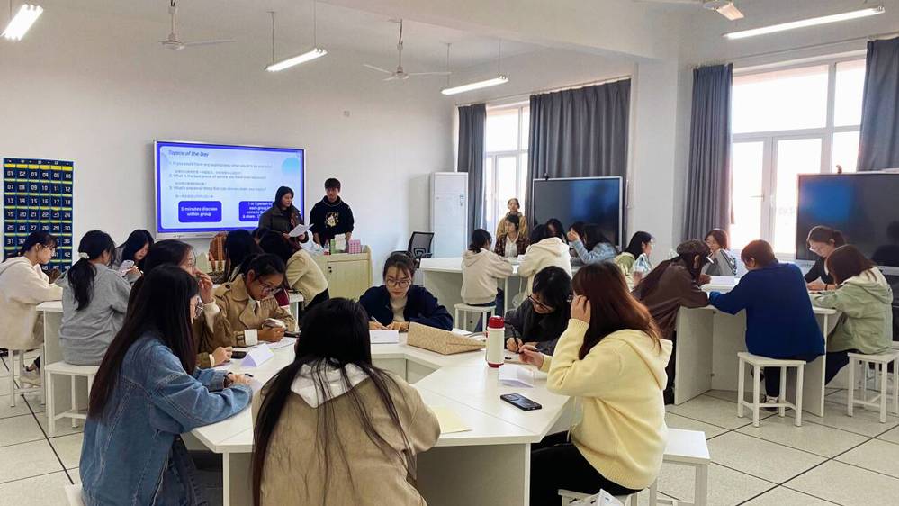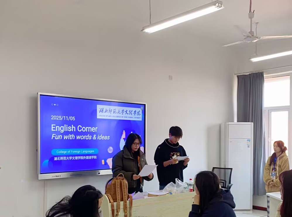 为营造浓厚的英语学习氛围,提升学生跨文化交际能力,2025年11月5日下午14:30,江南·体育外国语学院于三号实验楼505教室成功举办第二次英语角活动。本次活动在外国语学院院长郑桃云、党总支书记赵卫军的统筹组织下,由学院团总支承办,专任教师李阿欣到场指导。活动面向外国语学院全体学生,共有28名同学积极参与,主办班级为商务英语2401班。