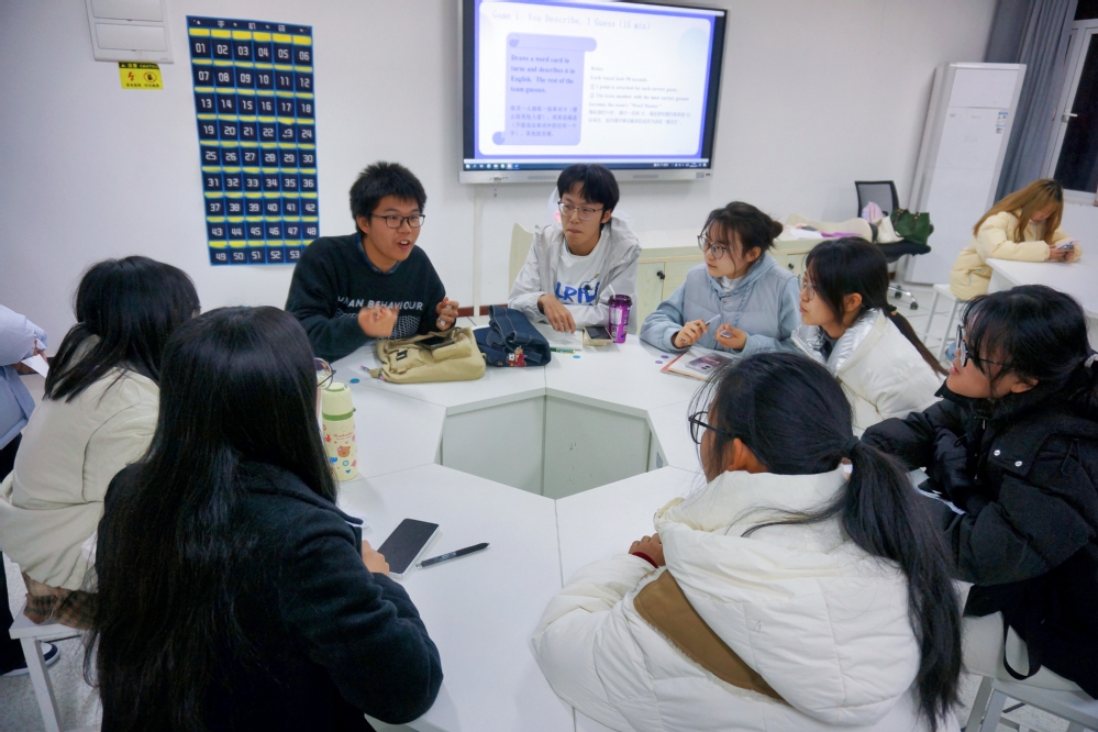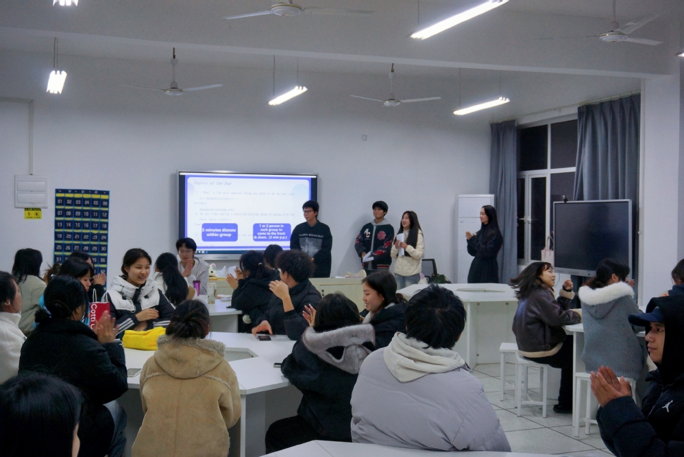 为营造浓厚英语学习氛围,提升学生跨文化交际能力,12月17日下午18:30,江南·体育外国语学院第五次英语角活动在三号实验楼505顺利落幕。活动由外国语学院院长郑桃云、党总支书记赵卫军精心统筹,学院团总支承办,专任教师余畅到场指导,主办班级为应用英语2404,2405,2406班,吸引全院42名学生积极参与。