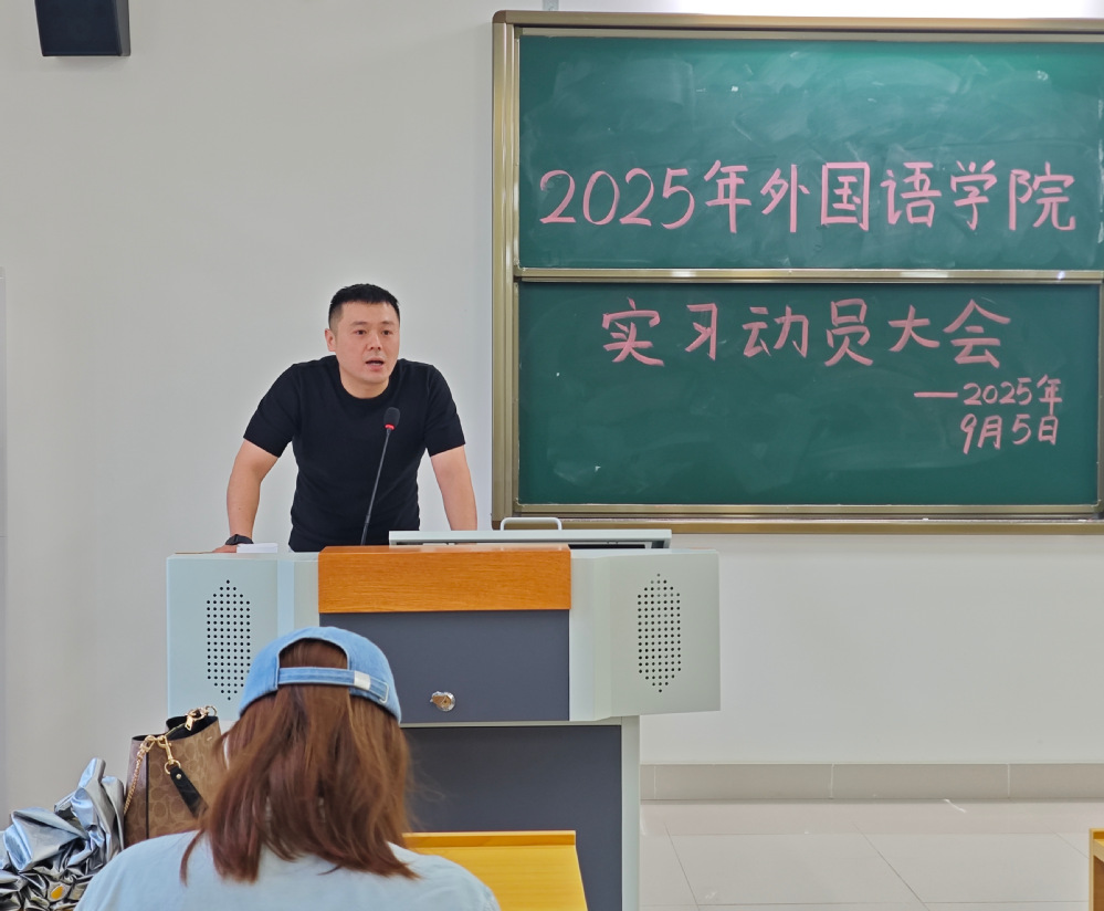 为扎实推进2022级毕业生实习工作,引导学生明确目标、安全上岗、快速转型,95日下午 14:30,外国语学院2022级毕业生实习动员大会在J3-101教室顺利举行。学院院长郑桃云、党总支书记赵卫军、实习指导老师丁雪缘、学工办负责人张一能及全体2022级毕业生参会,大会由辅导员汪宜心主持。