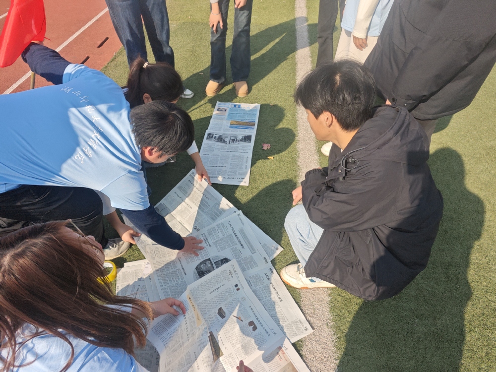 接下来,紧张激烈的团队竞赛环节高潮迭起,三场精心设计的游戏全面考验着各队的协作能力、逻辑思维与综合素养。“扑克接力”在激昂的音乐中展开,同学们按既定顺序分工协作、逻辑推演,在接力翻牌中比拼策略与默契;“一圈到底”伴随着欢快音乐欢乐上演,各队手拉手围成圆圈,通过肢体协调配合传递呼啦圈,在欢声笑语中进一步增进了彼此感情;“无敌风火轮”点燃全场热情,各队利用报纸和胶带快速合作组装“履带”,十位队员站入其中同心协力向前冲刺,在速度与平衡的较量中充分展现了团队凝聚力。每个项目结束后,均设置多个发言机会,让同学们及时分享参与感悟、交流经验心得。