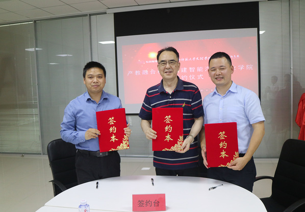 李咏成董事长、优能高教高国虎董事长、东风悦享首席技术官曹恺博士共同签署了《共建“优能东风悦享新能源汽车产业学院”合作合同》