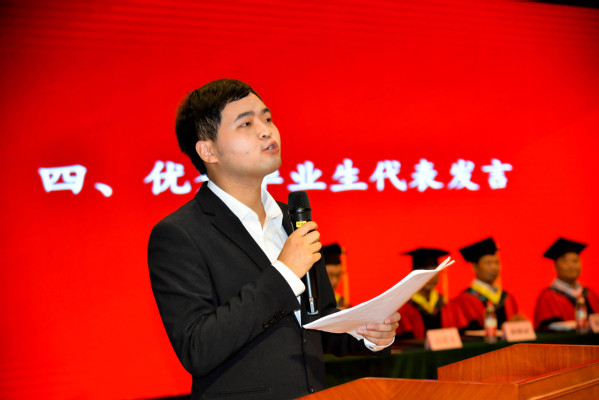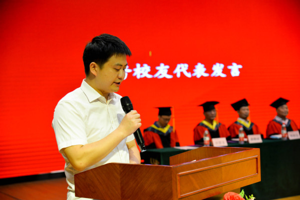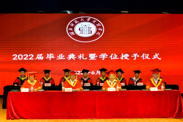 大会由党委副书记杨之毛主持。在激昂庄严的国歌声中,毕业典礼暨学位授予仪式正式拉开帷幕。党委书记杨邓红宣读了2022届优秀毕业生表彰文件副院王胜国宣读了2022届毕业生学位授予文件。优秀毕业生代表熊飞、优秀校友代表武汉科技大学信息科学与工程学院博士胡敏、优秀在校生代表李哲威、教师代表李淑慧先后发言,表达了对2022届毕业生的美好祝福和希翼。随后,校领导为2022届毕业生代表进行拨穗仪式并颁发学位证书。