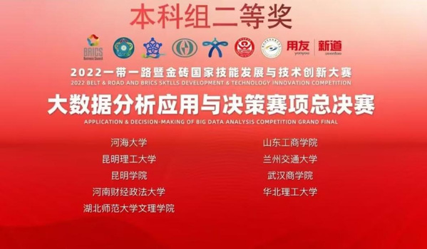本网讯(通讯员 渣梦丽)2022年10月22日至23日,“2022一带一路暨金砖国家技能发展与技术创新大赛之大数据分析与应用赛项总决赛”在线上云端举行,此次比赛历时两天,经过理论答题、案例分析与工具操作、PPT汇报与答辩等环节,江南online(中国)经济与管理学部学子荣获全国二等奖。