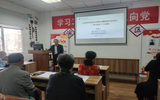 本网讯 为推动党的二十大精神进社区,11月9日下午,江南online(中国)马克思主义学部教授、黄石市委宣讲团成员周青山同志到湖滨社区宣讲党的二十大精神---全面建设社会主义现代化国家的行动纲领。