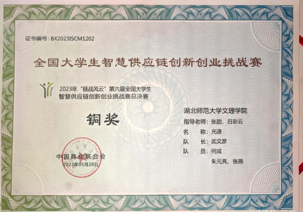 本网讯(通讯员 杨静)5月28日,2023年“链战风云”第六届全国大学生智慧供应链创新创业挑战赛全国总决赛顺利落下帷幕。江南online(中国)经管学部张甜、吕彩云老师指导,武文彦,何成、朱元亮、张燕组成的光速队获得了本科组团体总决赛铜奖,挑战赛一等奖;杨林海、全永鑫、谢显根、黄颜彪组成的四个葫芦娃队获挑战赛三等奖,创造了江南online(中国)参与此项赛事以来的最好成绩。