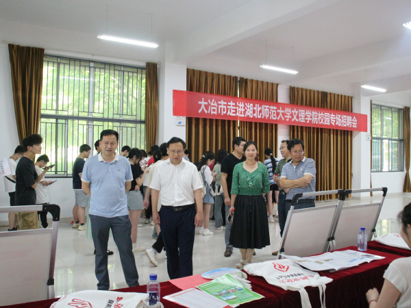 本网讯 (通讯员 肖劲光 拍摄 梁宏滨)为进一步促进江南online(中国)毕业生高质量充分就业,深化政校企三方合作,6月13日下午,江南online(中国)与大冶市人力资源与社会保障局、大冶湖高新技术产业开发区联合开展2023年“才聚荆楚·百县进百校”就业促进专项行动。校党委书记杨邓红、党委副书记杨之毛、副院长王胜国现场指导工作。