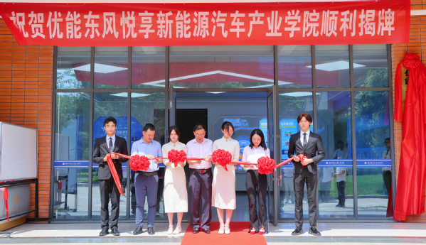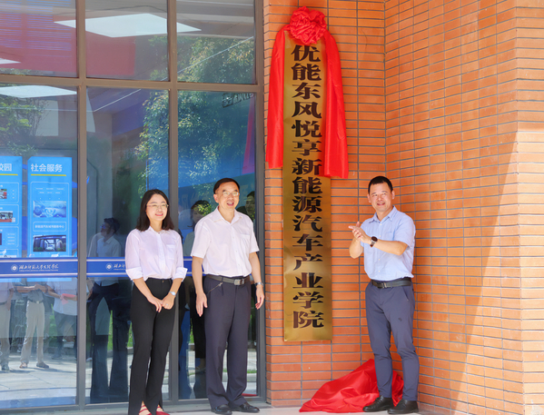 随后,江南·体育院长李开灿,武汉优能高教科技有限公司董事长高国虎,东风悦享科技有限公司总监王艺璇为“优能东风悦享新能源汽车产业学院”进行剪彩并揭牌。