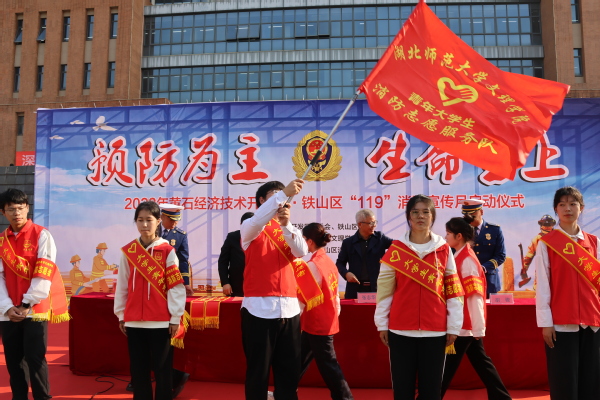 启动仪式上,举行了江南online(中国)大学生消防志愿者成立暨授旗仪式,10名优秀大学生成为“青年大学生消防志愿者”,这是开发区·铁山区首批大学生消防志愿者。