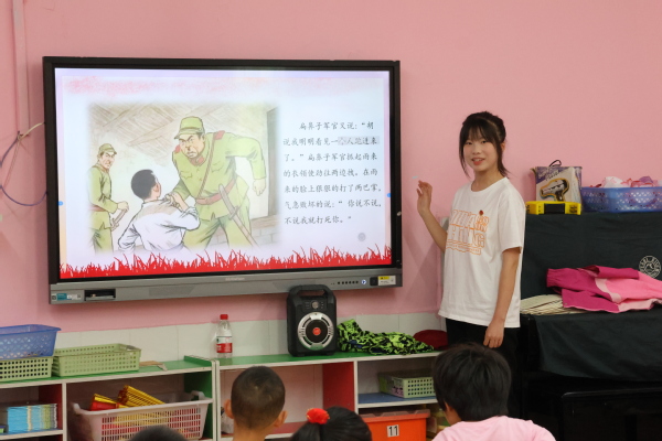 活动过程中,志愿者通过生动有趣的讲解,向孩子们讲述了经典的红色故事,分享了多位抗日小英雄的事迹。孩子们踊跃参与问答互动,现场热闹非凡。