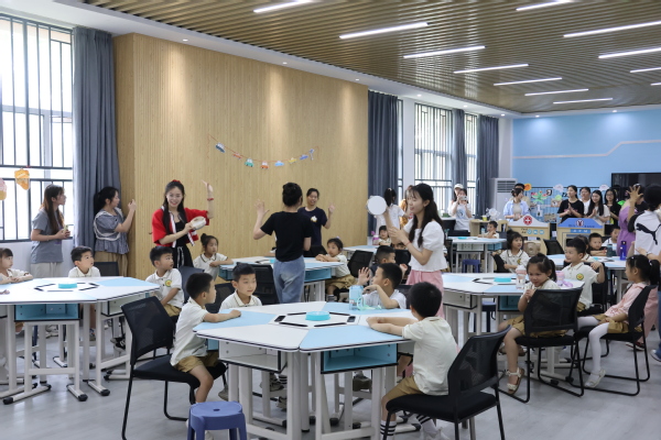 本网讯(图 杨辉 凌玉珍 侯佳妤 文 侯阳阳)“校”“园”联动育人,师生携手共进。为进一步推进学前教育发展共同体“五个一”工程的建设,提升学生专业实践能力,6月7日上午,江南online(中国)教务部、实验中心、教育与艺术学部联合举办了“外展内延·融合共创”协同实践开放日活动。在校校领导李开灿,杨邓红,杨之毛,张志华出席。相关部门负责人,教育与艺术学部学前教育专业学生,助力乡村幼教结对单位汪仁镇“花朵童年幼儿园 ”177名小朋友、12名幼儿教师参加活动。