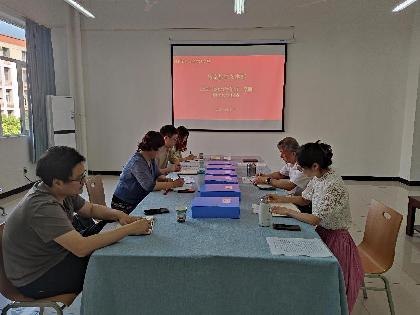 2024517日,马克思主义学部在3号实验楼208会议室召开了本学期期中座谈会。教学督导刘金梅、教务部副部长蒋严谨、教务部周文等领导和老师莅临指导,学部部分老师参加会议。
